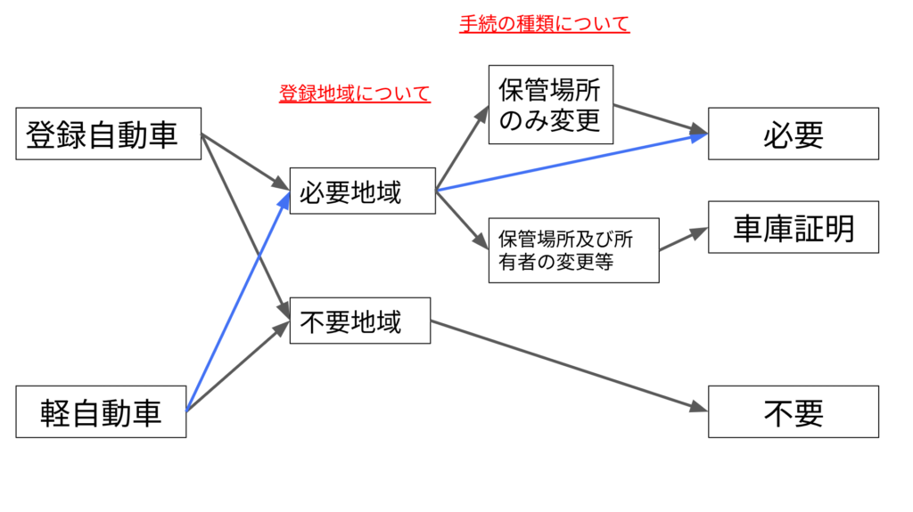 したがって、軽自動車の保管場所届出に関する必要地域においては、①新たに軽自動車の使用を開始した場合と②保管場所の位置を変更した場合に届出の手続きが必要です。